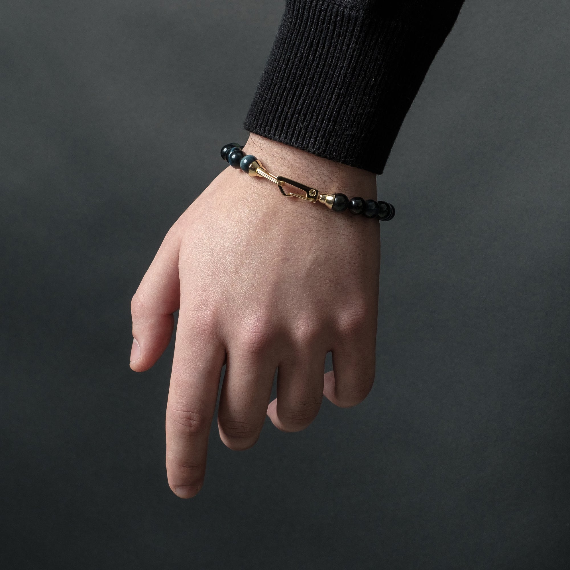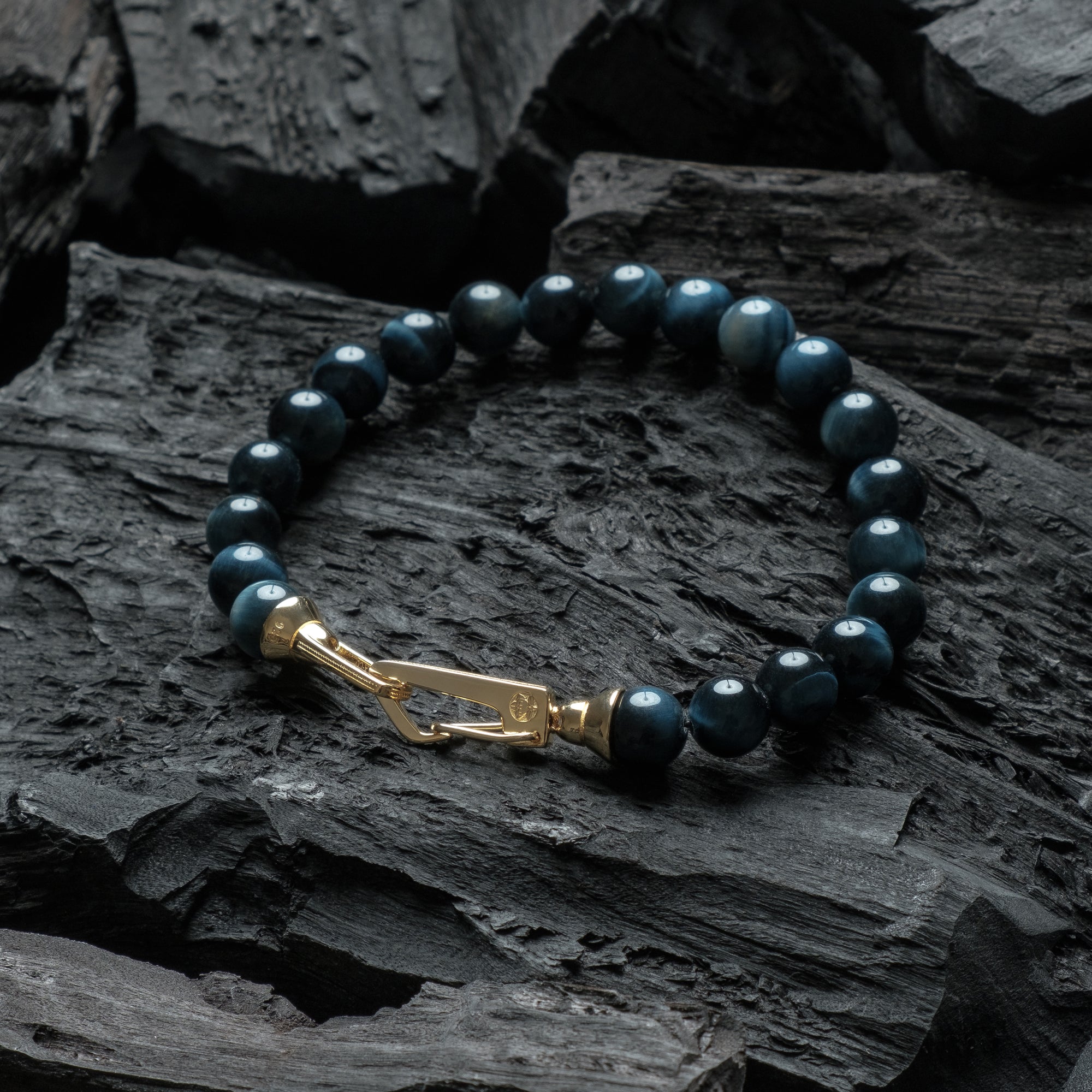Deluxe Gold Blue Tiger's Eye Bracelet - Front