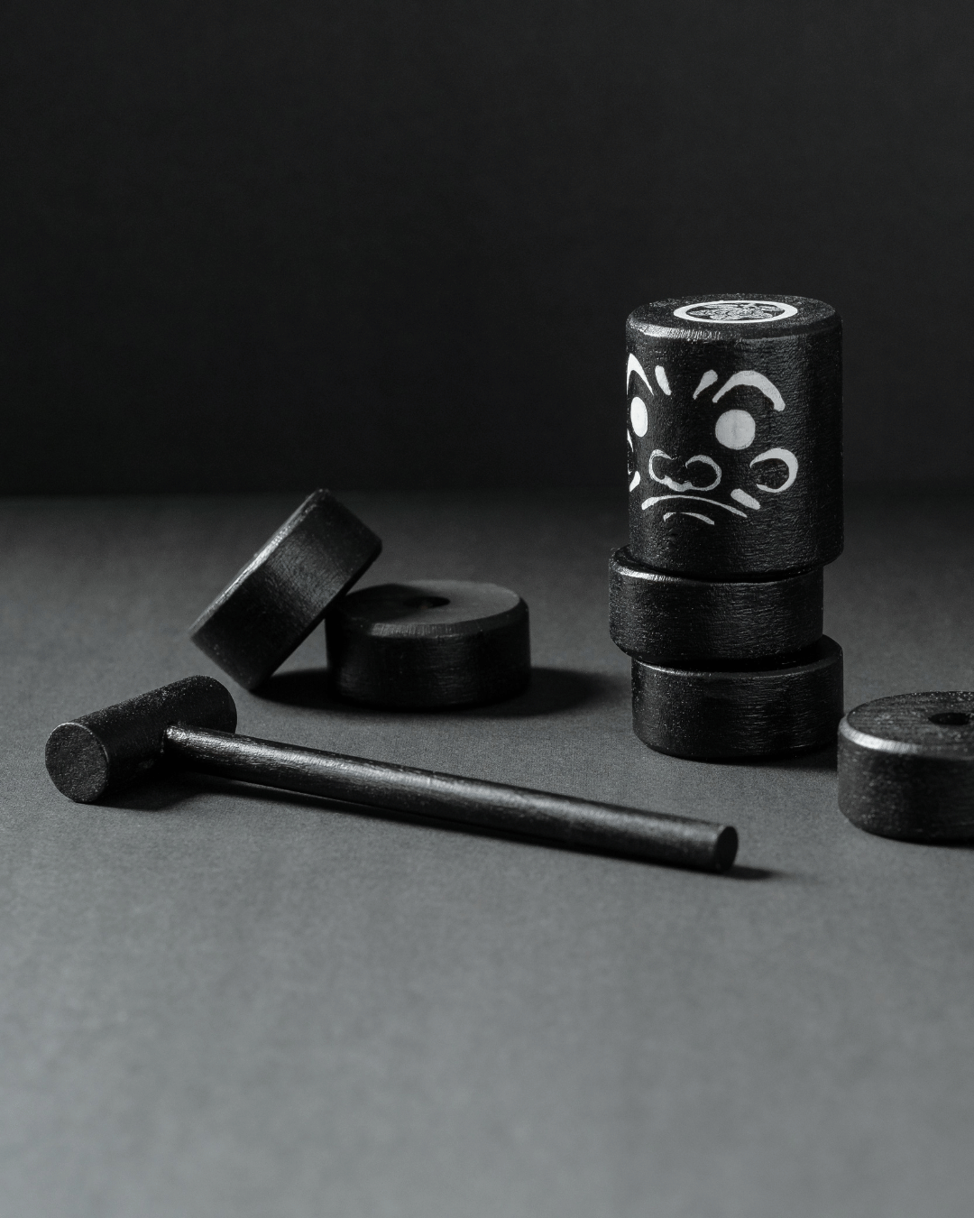 Daruma Otoshi is a traditional Japanese game made of stacked wooden blocks. The goal is to knock out each layer with a small hammer without letting the Daruma fall.