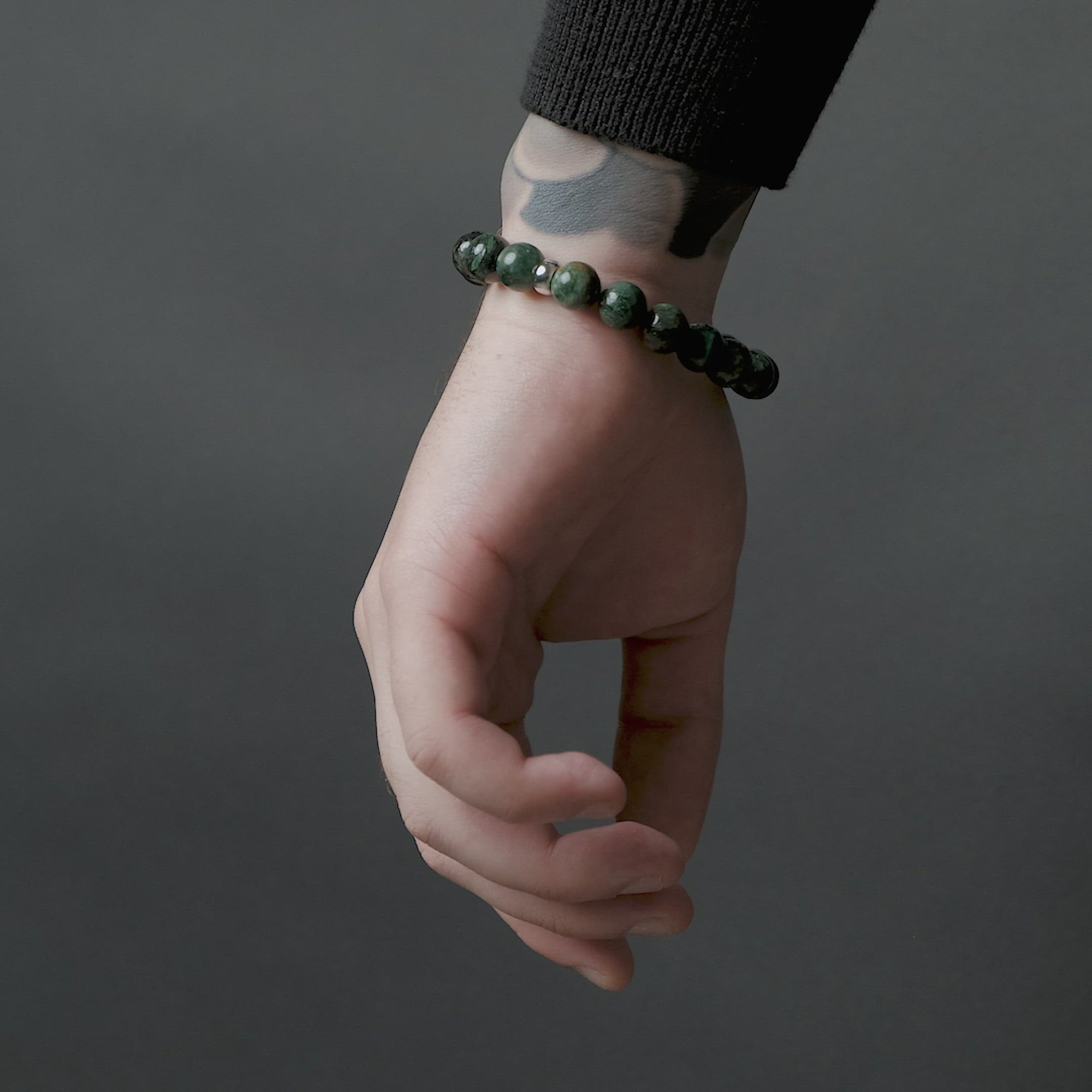 Emerald Fuchsite is a healer's stone that promotes good health, well-being, cleansing and will bring balance throughout your life and Emerald Fuchsite is a vividly green stone that can appear in a moss pattern, spotted pattern, or brush-stroke pattern.